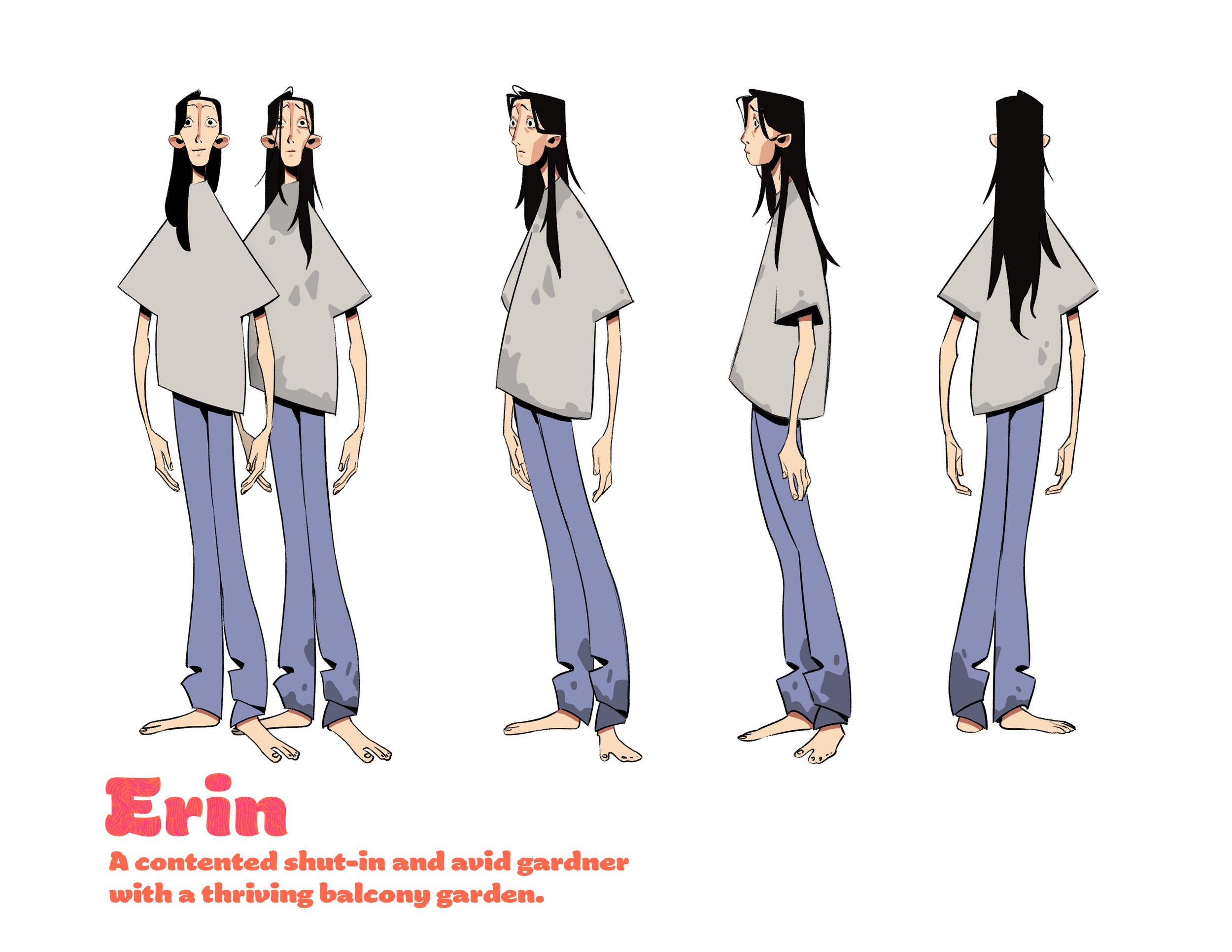 A shut-in in denial is gradually presented with the reality of her deteriorating home, personal well-being, and friendships. I focused on designing an awkward and spindly character that could convey a lot of humor and anxiety, while also being quick to draw and animate.